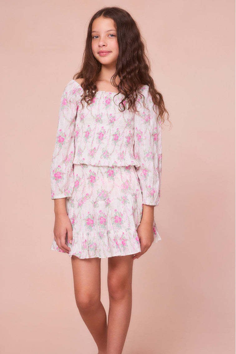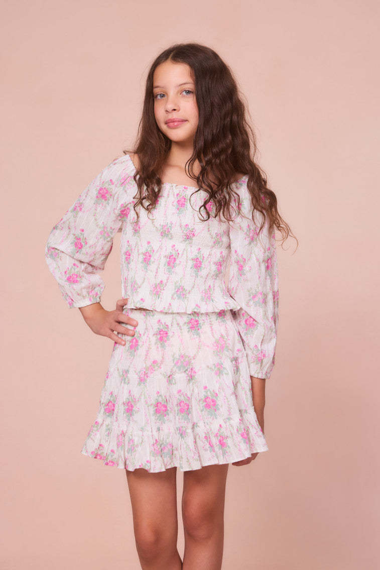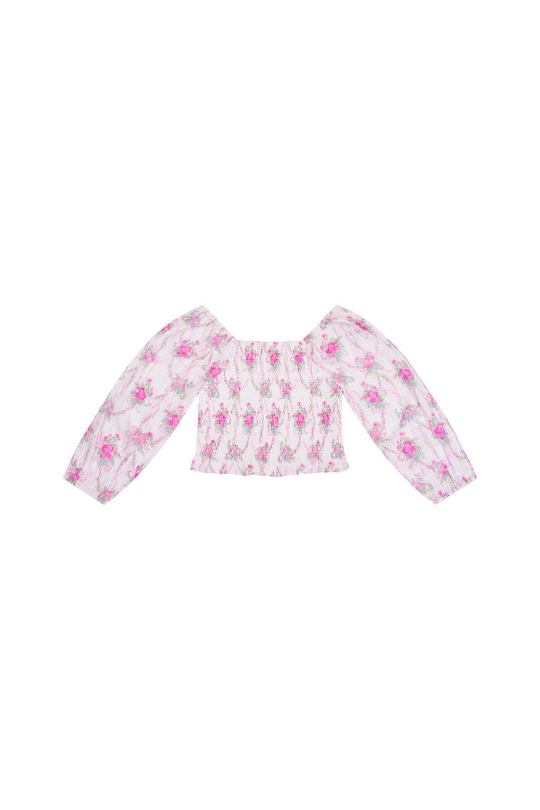 Our little loves are forever sweet in our Malva Top. Featuring our heirloom floral print of the season. this top stuns with a smocked bodice and long blouson sleeves with elastication for comfort.