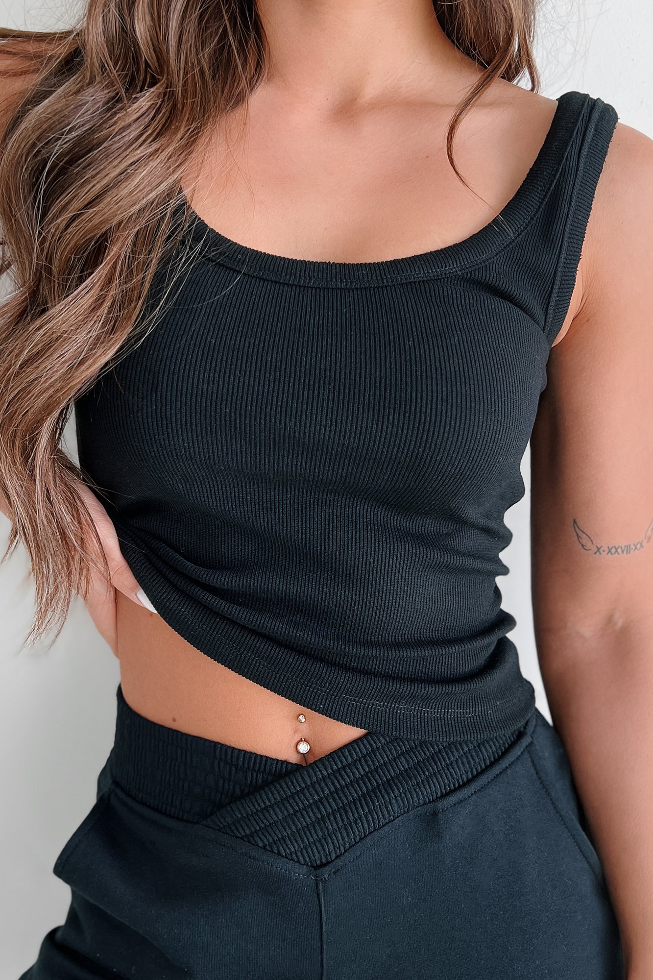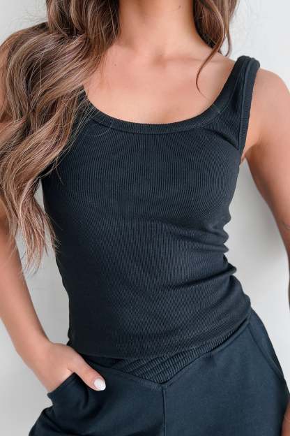 Meesha Ribbed Scoop Tank (Black)