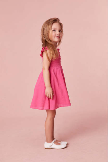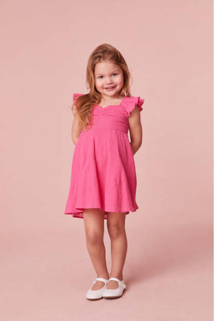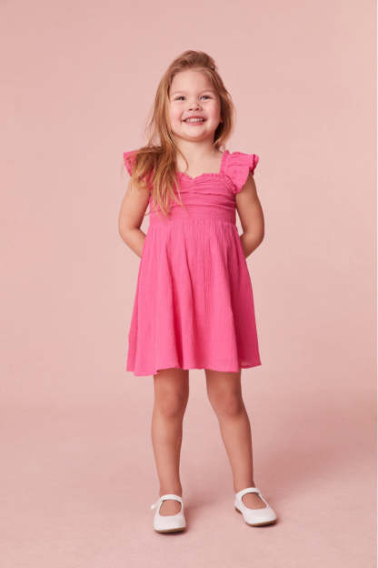 Our littles are a springtime daydream in our new Mefford Dress. This must-have dress features pretty flutter sleeves and a pleated skirt. Add a layer with our Girls Mini Avignon Cardigan. Match your little one with our Ivella Smocked Adjustable Mini Dress.
