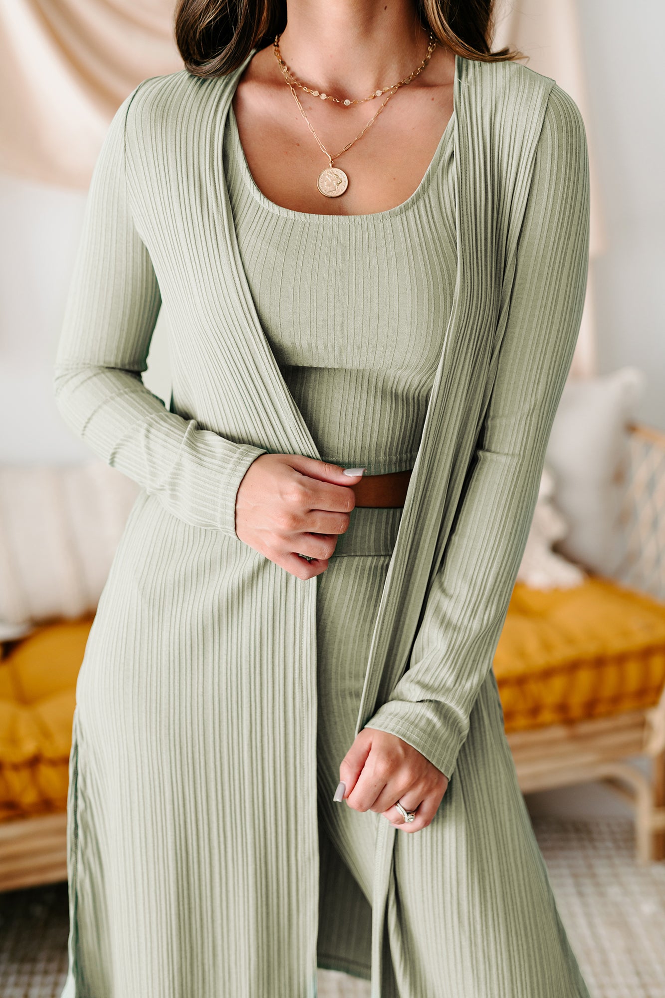 Miss You Already Three Piece Ribbed Lounge Set (Sage)