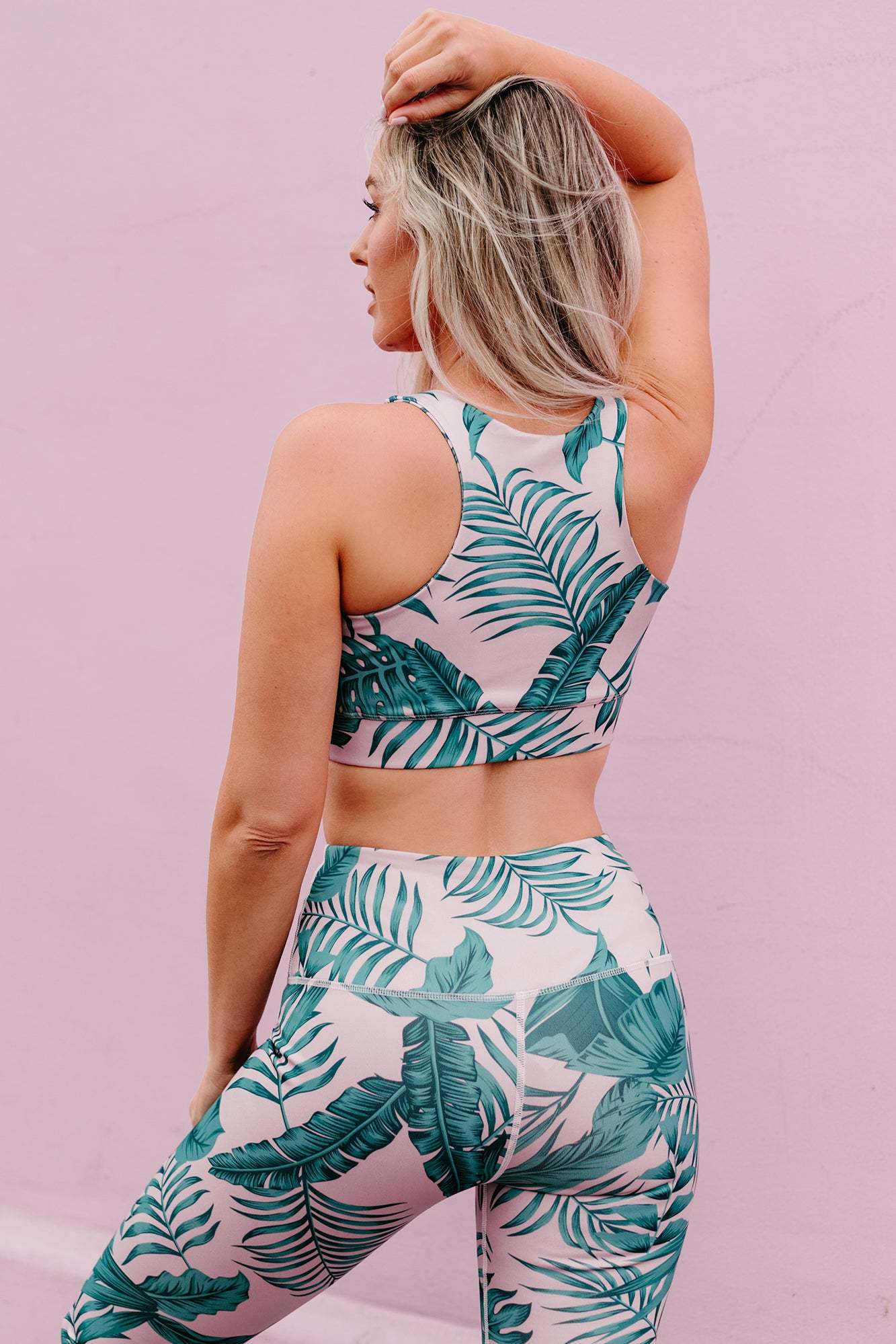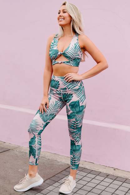Morning Runs Palm Print Cut-Out Activewear Set (Tropical Print)