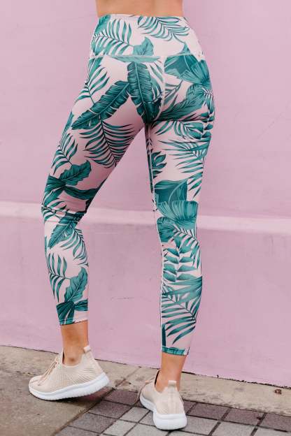 Look Good While Working Out In This Tropical Print Activewear Set! You'll Love The Cut-Out. Padded Sports Bra Top & Matching. High Rise Leggings!