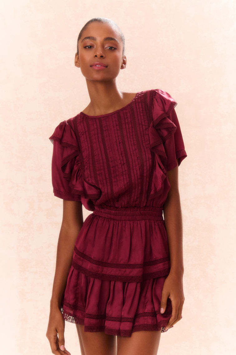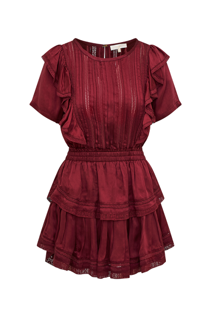 Natasha Cotton Ruffle Dress - OXBLOOD