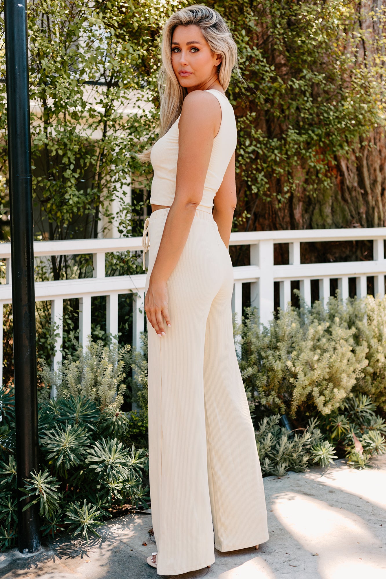 Get Excited For This mytopdress Original. Vanilla. Ribbed. Three-Piece Set! You Get A Crop Top. Some High Rise. Wide Leg Pants. & A Duster Cardigan!