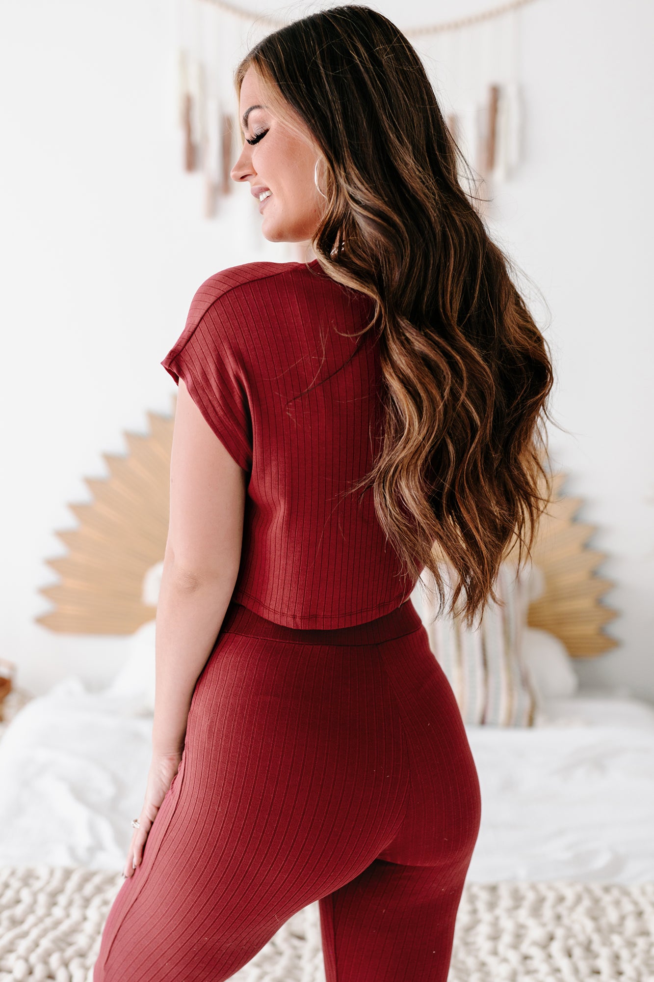 - Matching Bottoms: "New Era Ribbed Tie-Front Leggings (Red/Brown)"