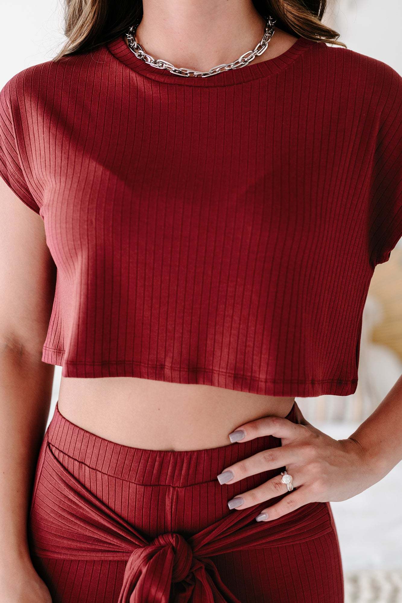 Snag This Red/Brown Ribbed. Short Sleeved. Oversized Fit. Crop Top Today!