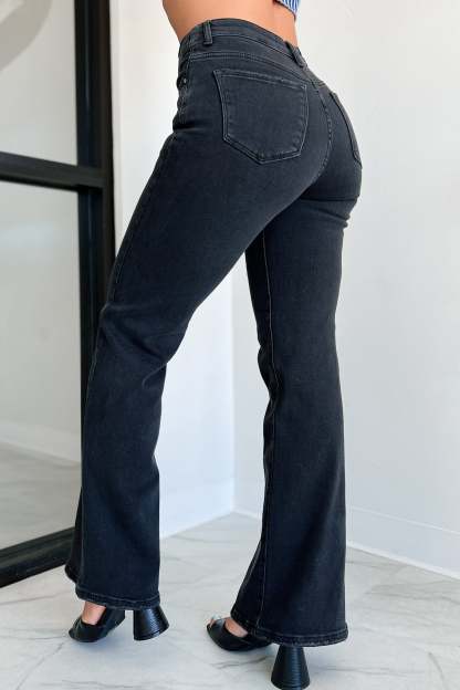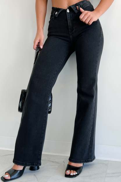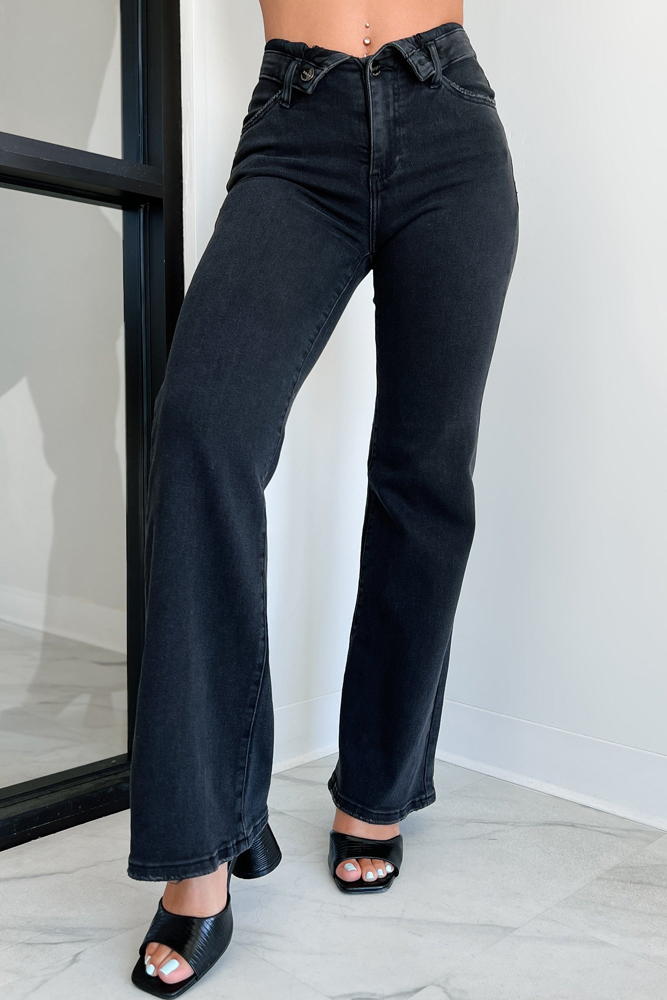 Otto Mid-Rise Folded Waist Risen Wide Leg Jeans (Black)