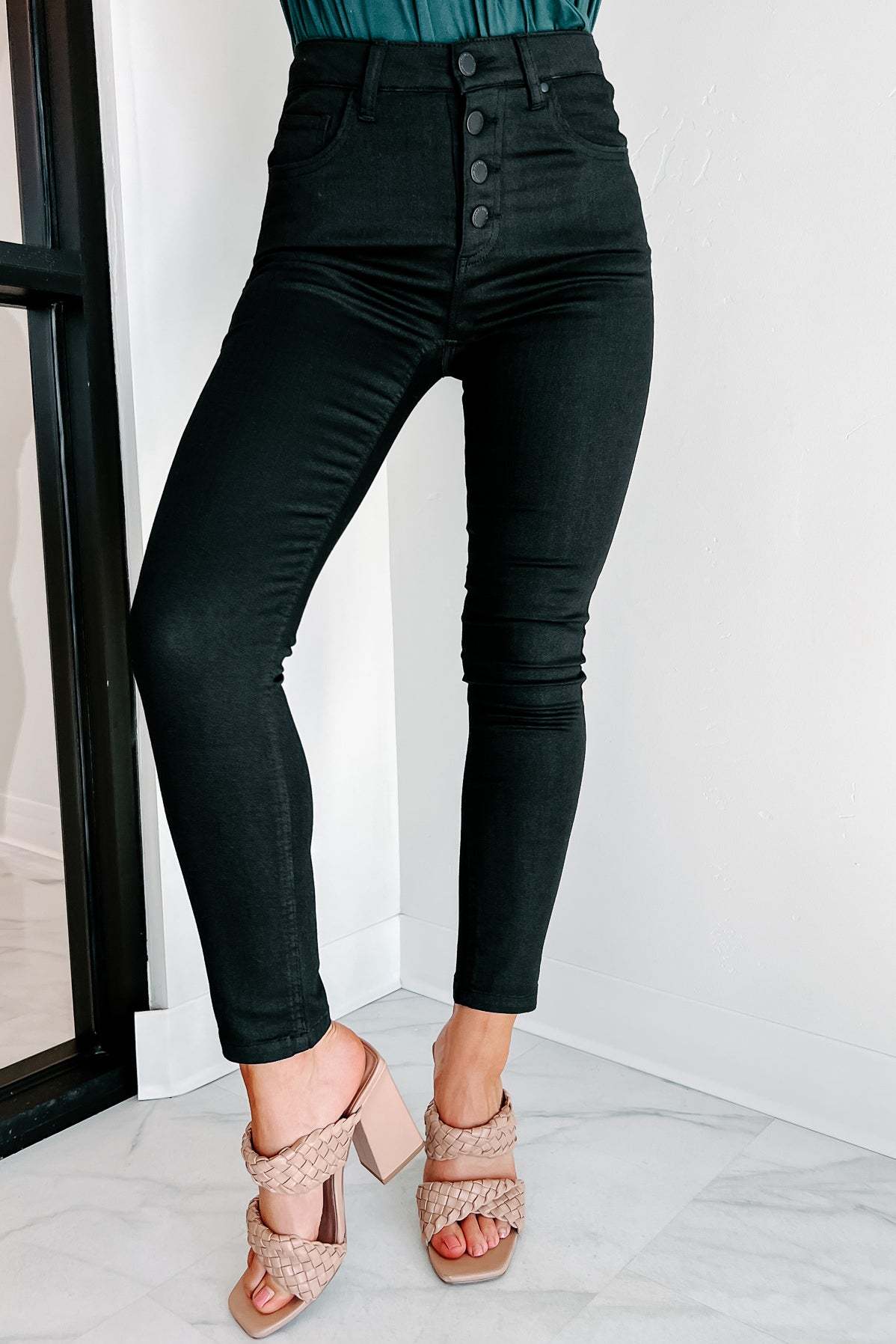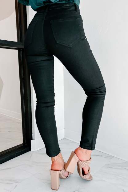 Outdated Thinking High Rise Button-Fly Risen Skinny Jeans (Black)