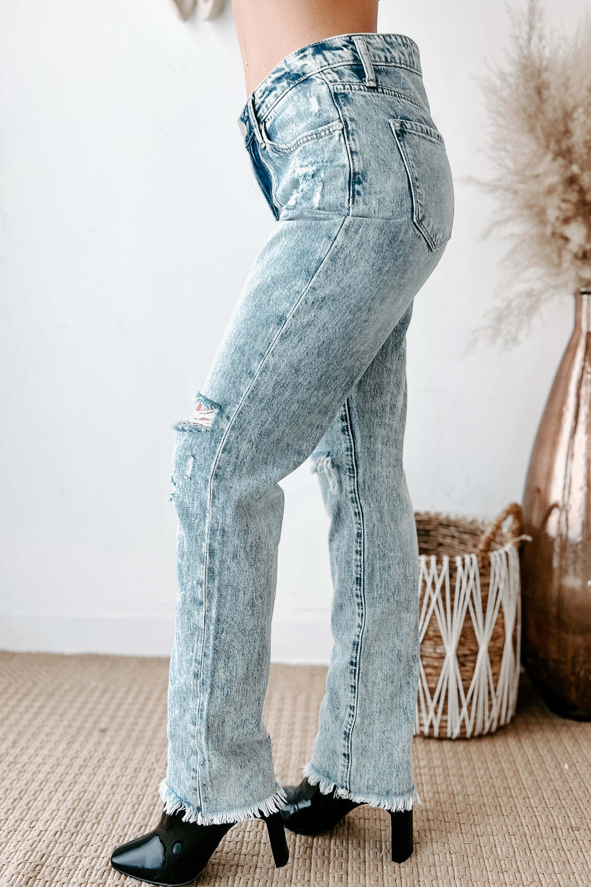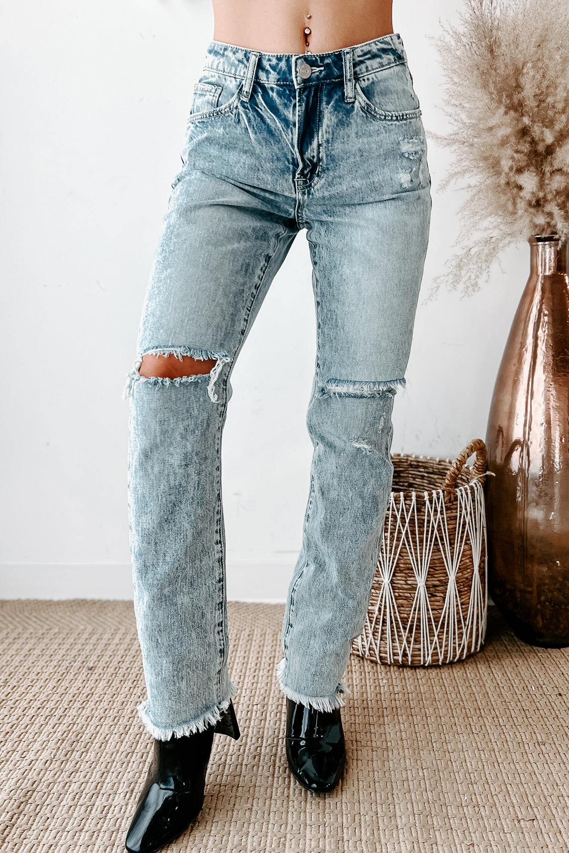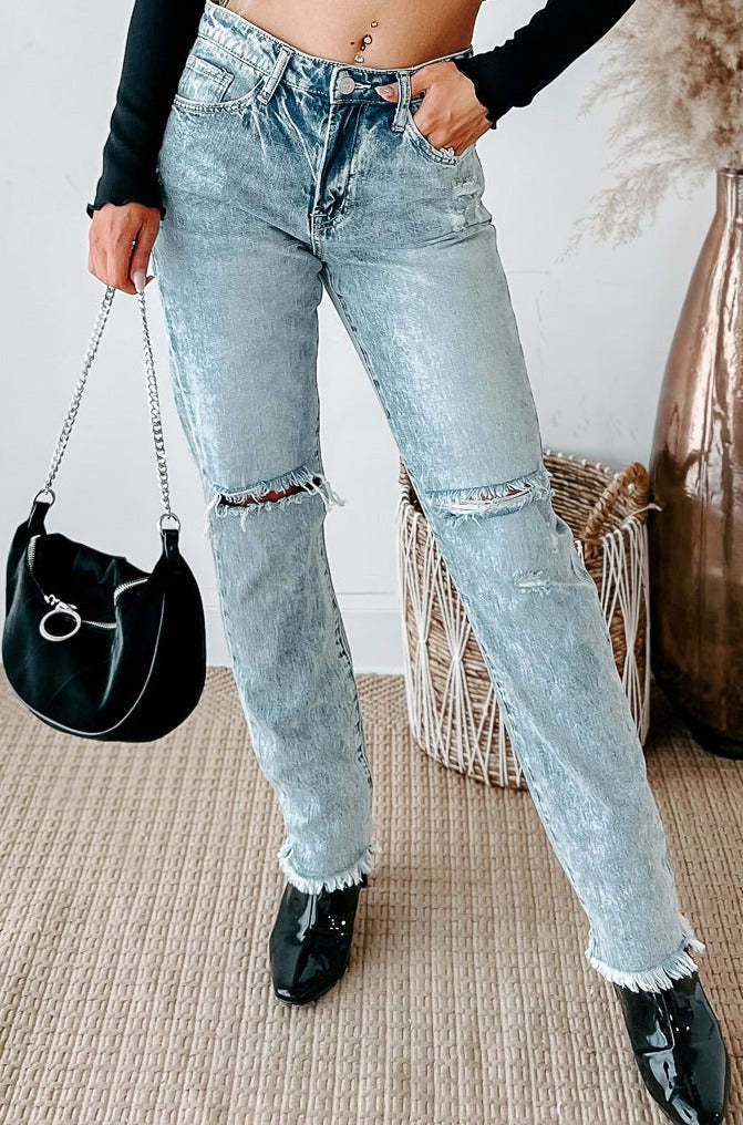 Phaedra High Rise Distressed Straight Leg Jeans (Light)