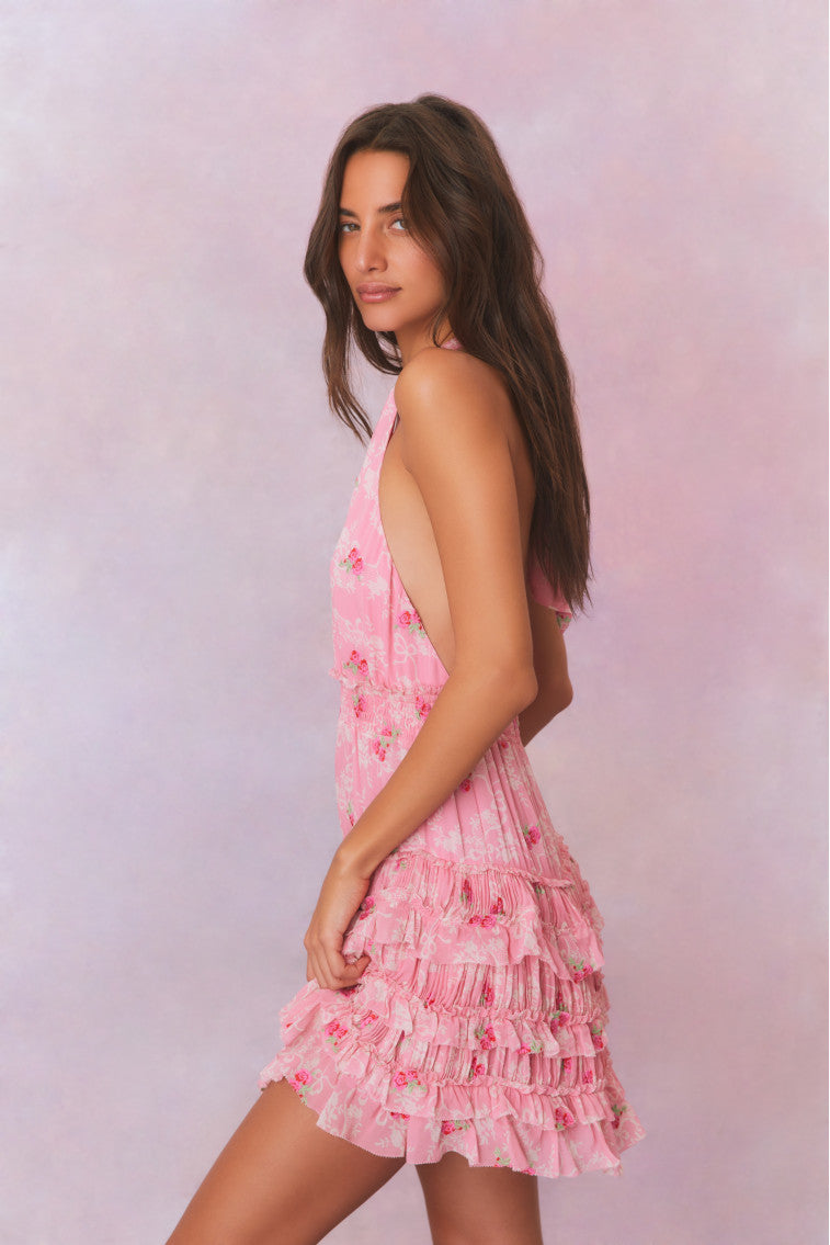 Quintelle Halter Floral Mini Dress
