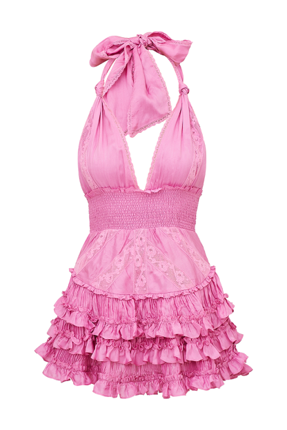 Quintelle Ruffle Halter Mini Dress - TULIP PINK