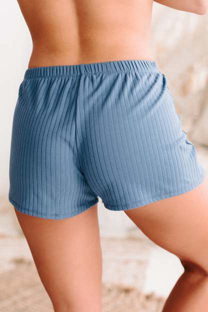 Get Ready To Relax For The Night With This Blue Haze. Ribbed. Crop Top & Shorts Set!