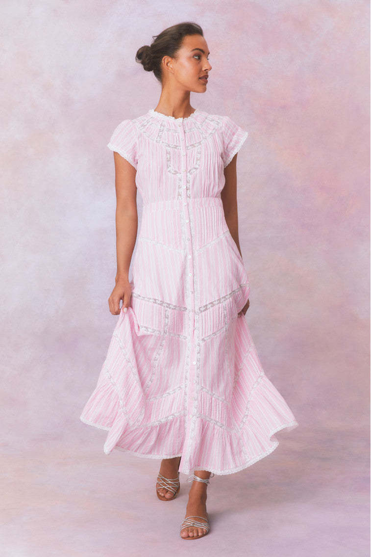 Remi Cotton Stripe Maxi Dress- CAPTIVA PINK