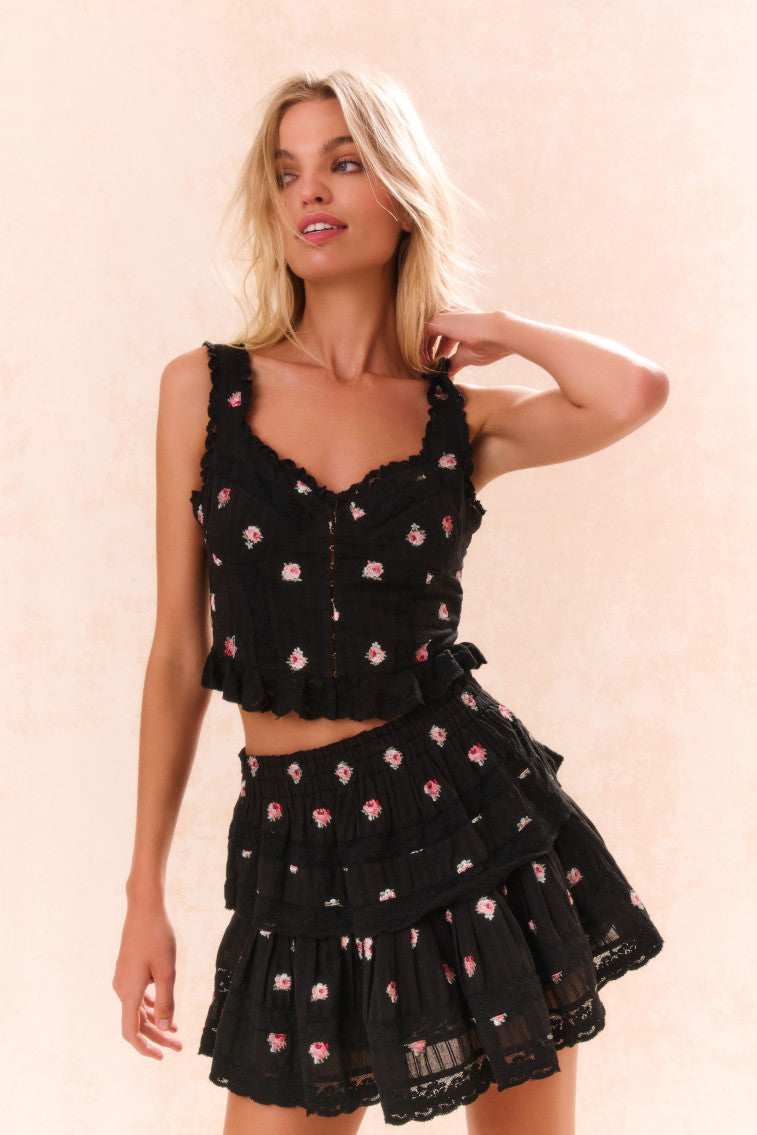 Ruffle Mini Embroidered Floral Skirt