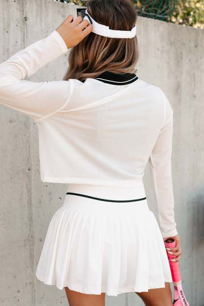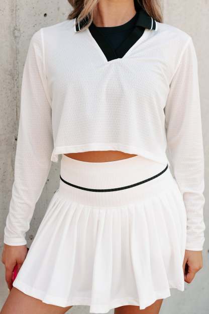 Scoring Points Retro Stripe Crop Top & Tennis Skirt Set (White/Black)