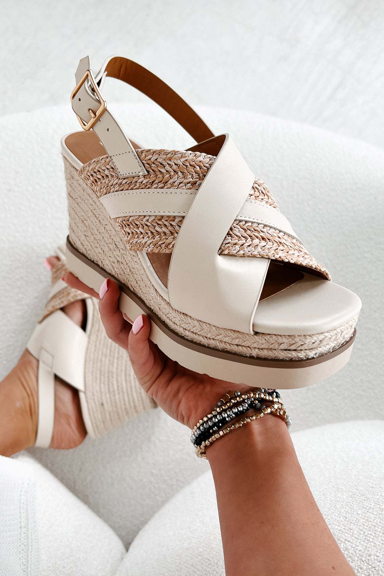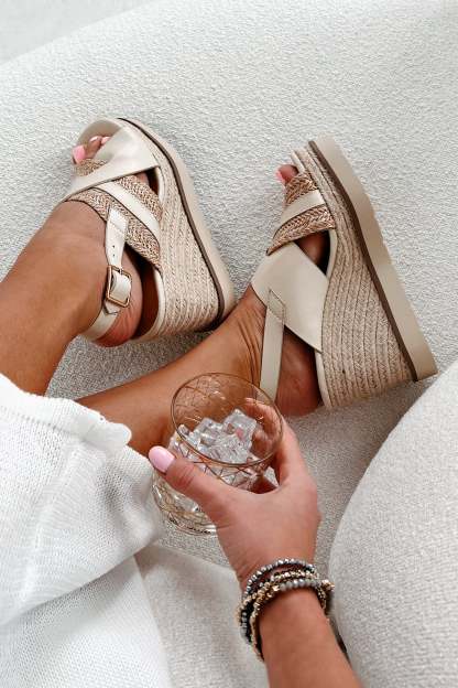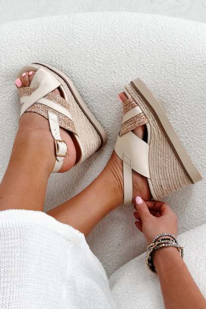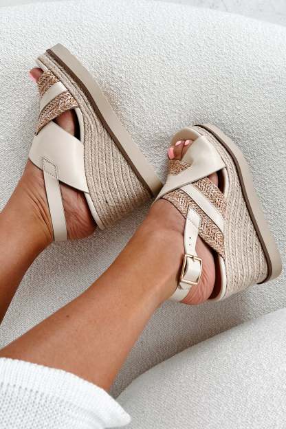 Slice Of Paradise Platform Wedge Heeled Sandal (Beige/Raffia)