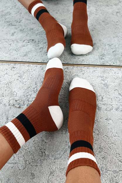 Sole Survivor Colorblock Stripe Crew Sock (Camel)
