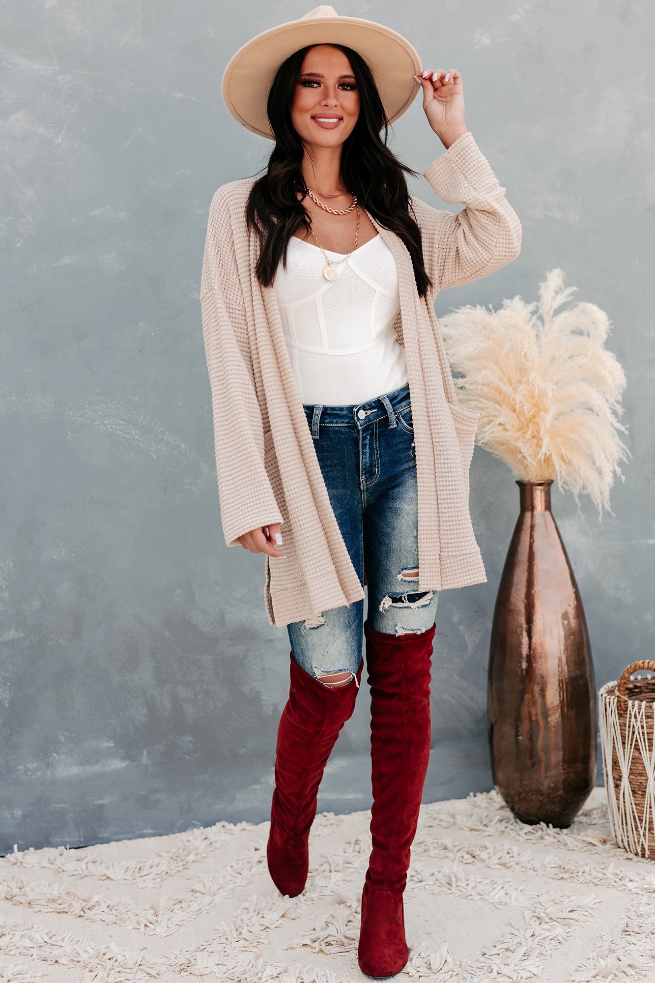 Some Day Soon Waffle Knit Cardigan (Cream)