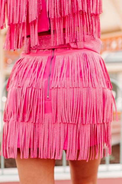 Spotlight Stealer Rhinestone Fringe Mini Skort (Fuchsia)