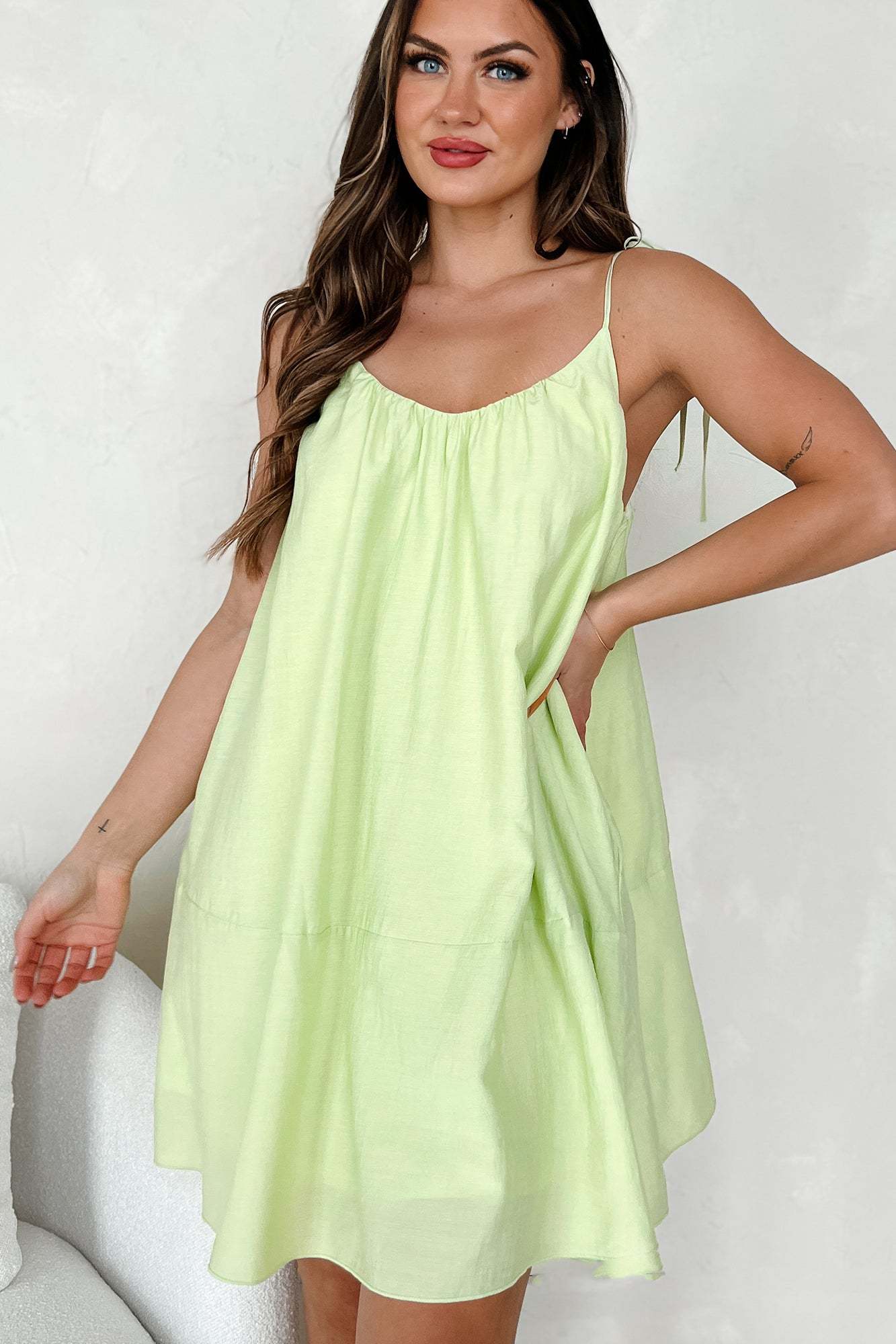 Sun-Kissed Serenity Tie-Strap Mini Dress (Melon)