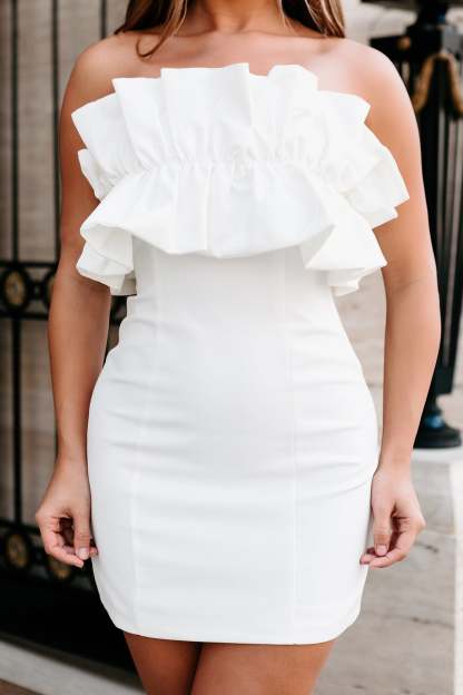 Sweet Stunner Strapless Ruffled Mini Dress (White)
