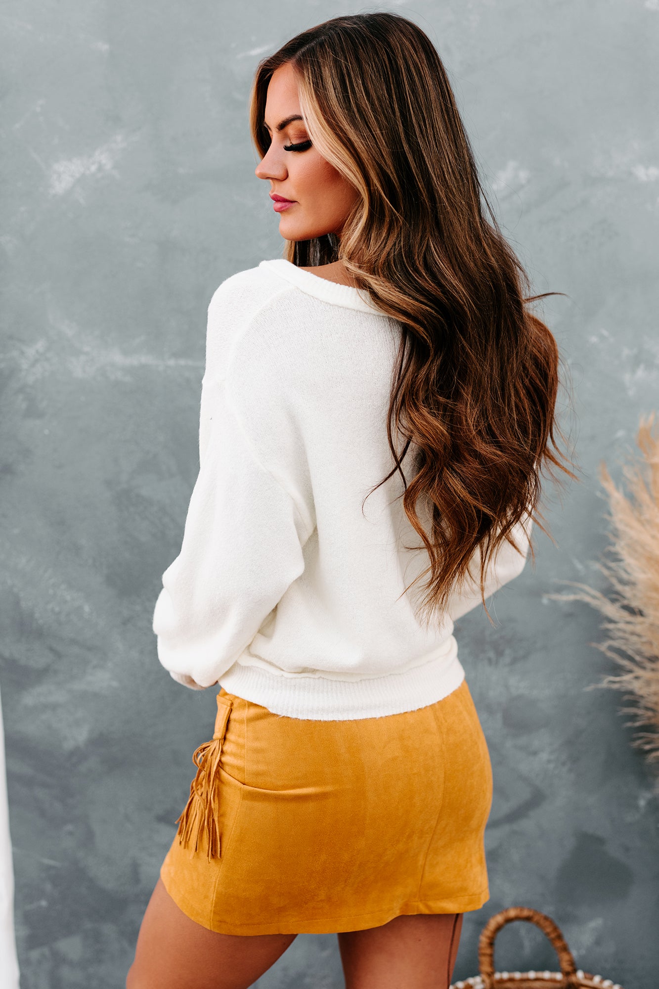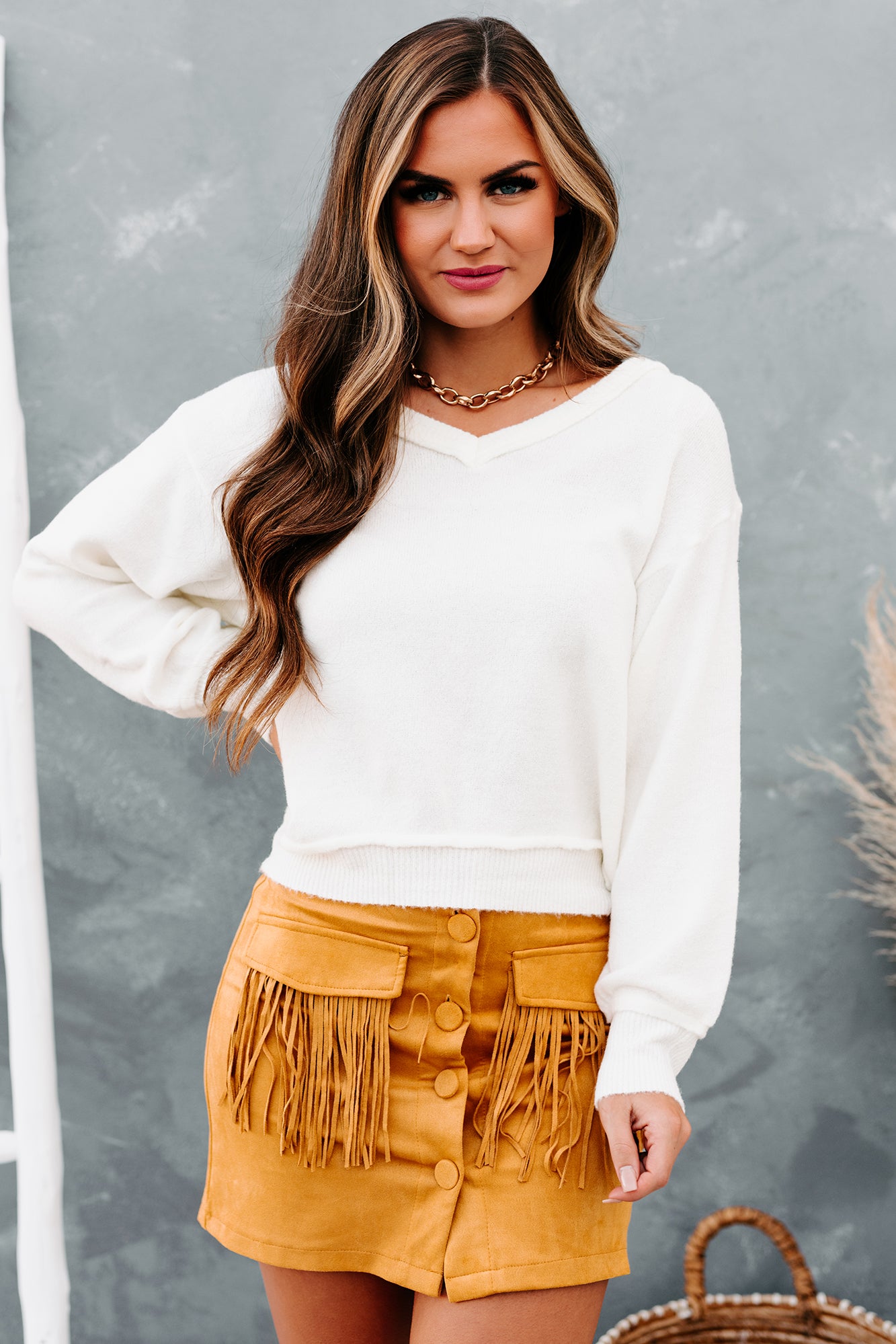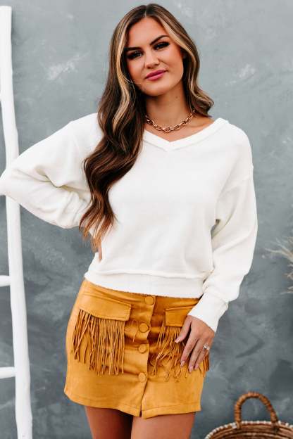 Tamika V-Neck Sweater Top (Off White)