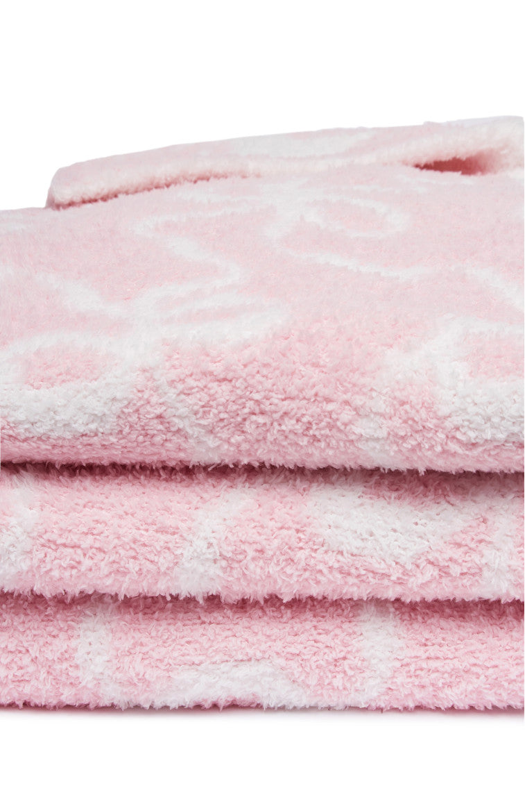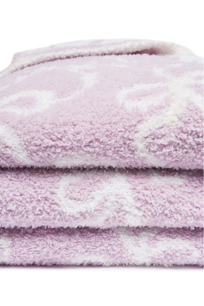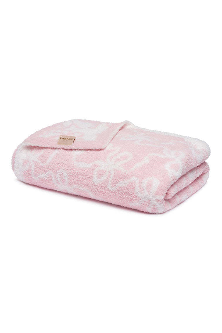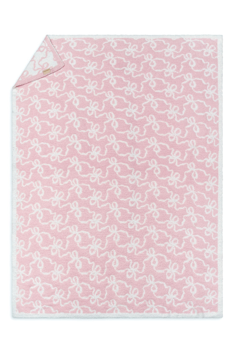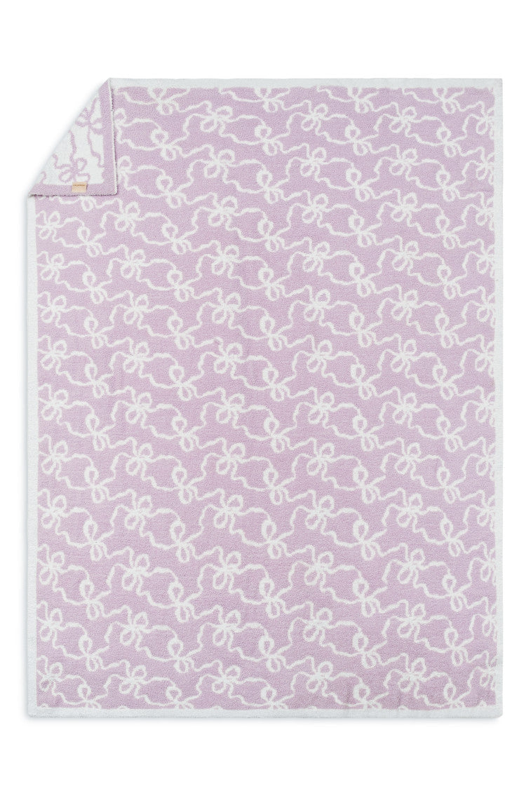 Cozy dreams come true with our new Teddy Bow Blanket. Arriving in a new teddy quality. these plush blankets are our coziest yet with an extra warm. ultra-soft feel to the touch. The blanket is printed with our signature winding bow print all over.