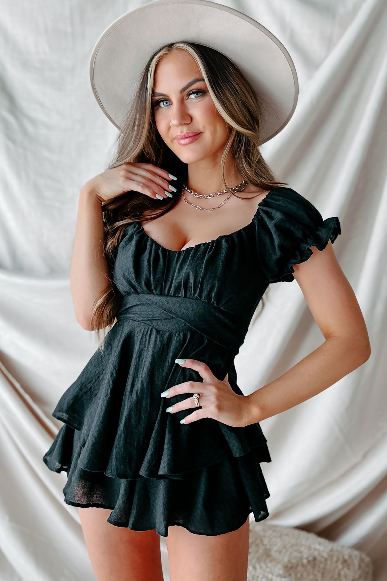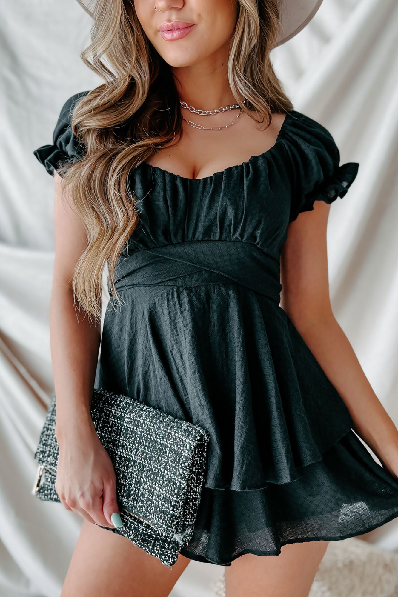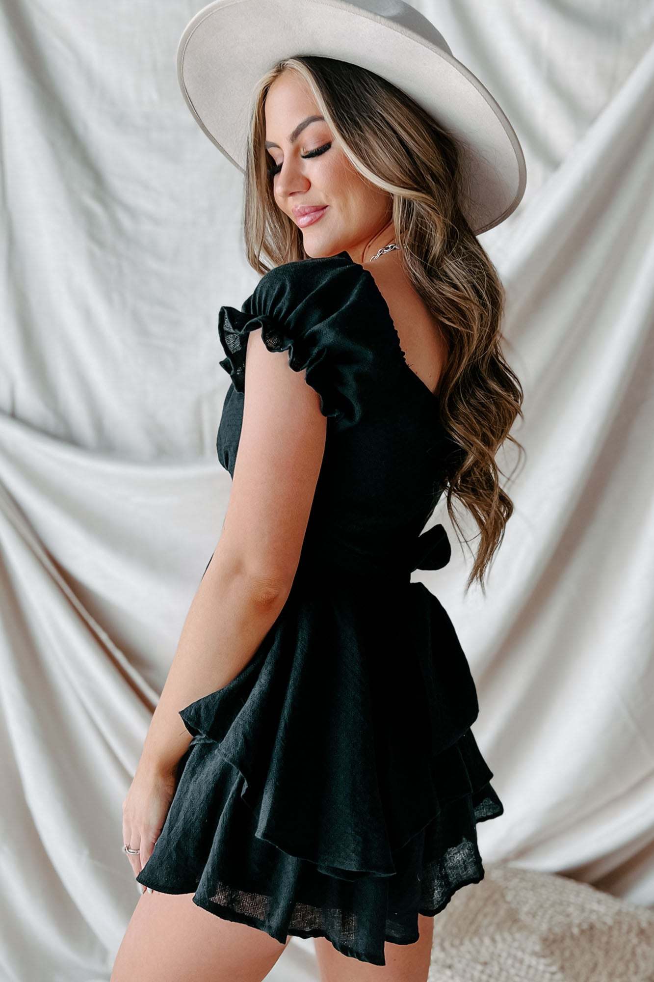 Time To Remember Ruffle Tie-Back Romper (Black)