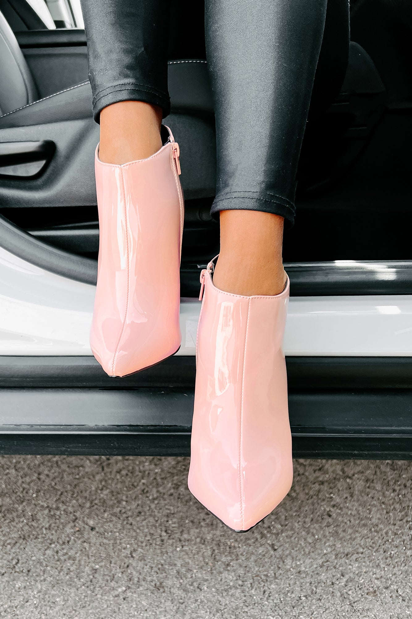 To Glam To Care Patent Leather Ankle Booties (Pink)