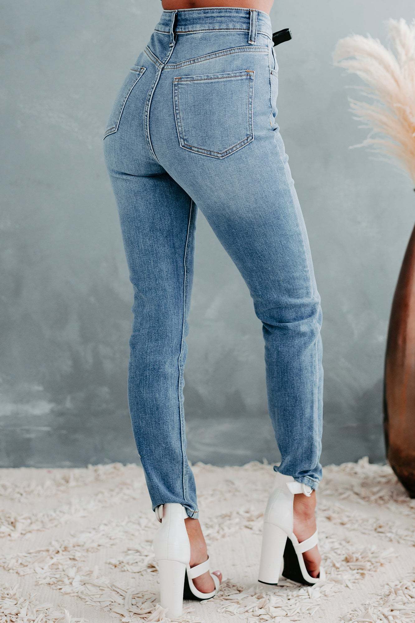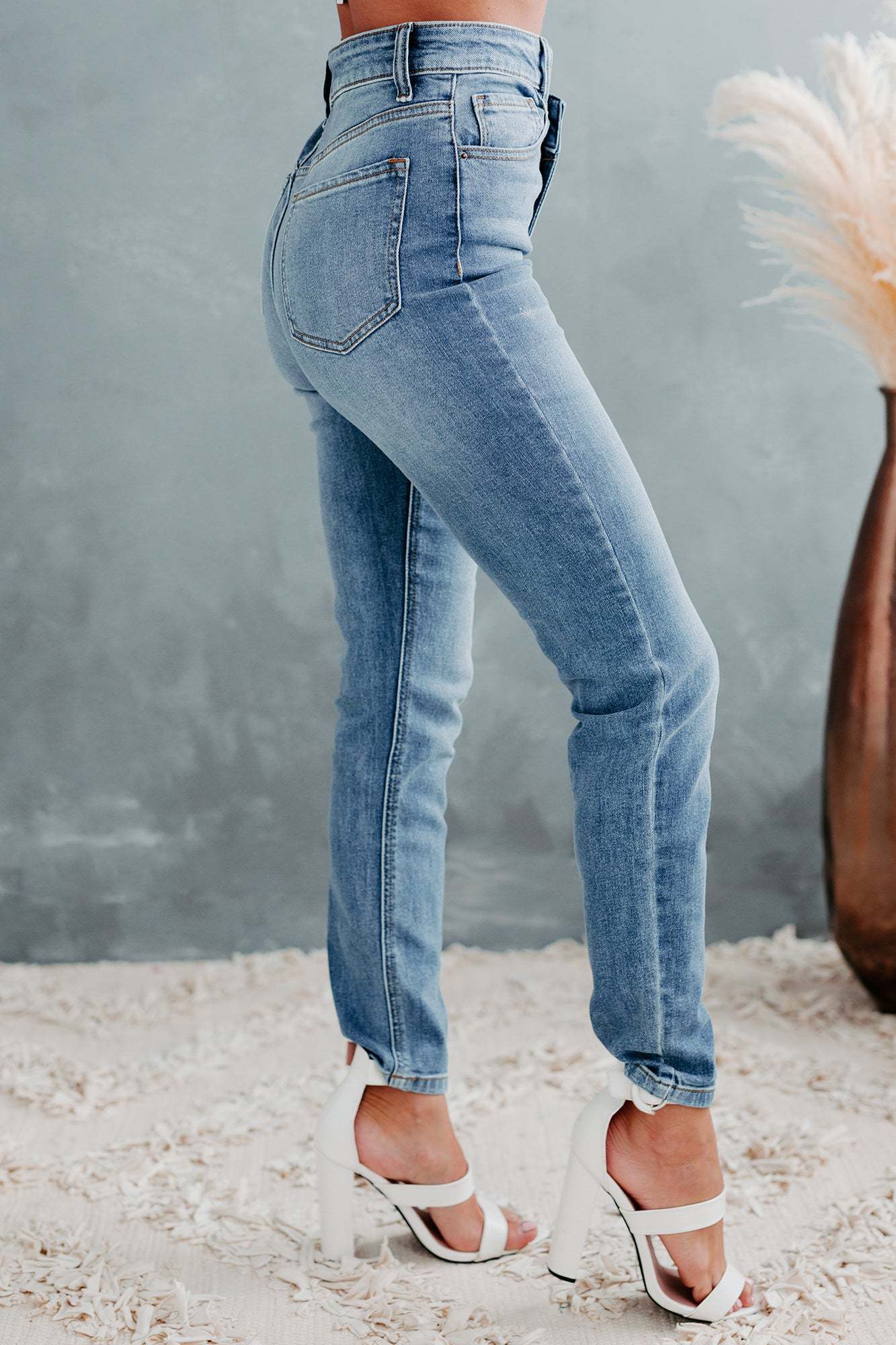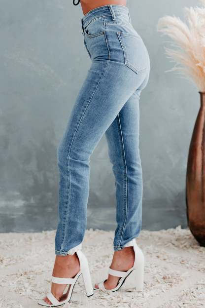 These Unique 90's High-Rise. Cross-Fly. Skinny Jeans In Medium Light Are All The Rage Right Now. & Are So Flattering!