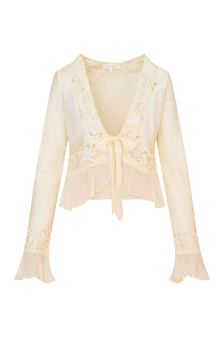 Vivetta Silk Charmeuse Tie Front Top-LIMEADE