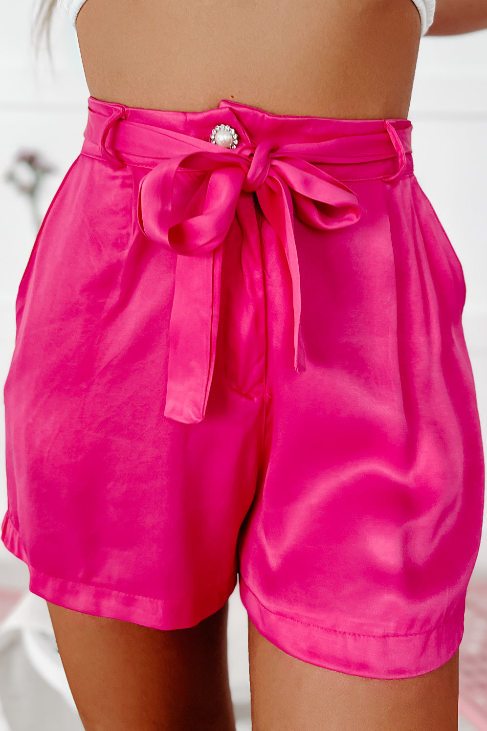 We Belong Together Satin Two-Piece Short Set (Fuchsia)