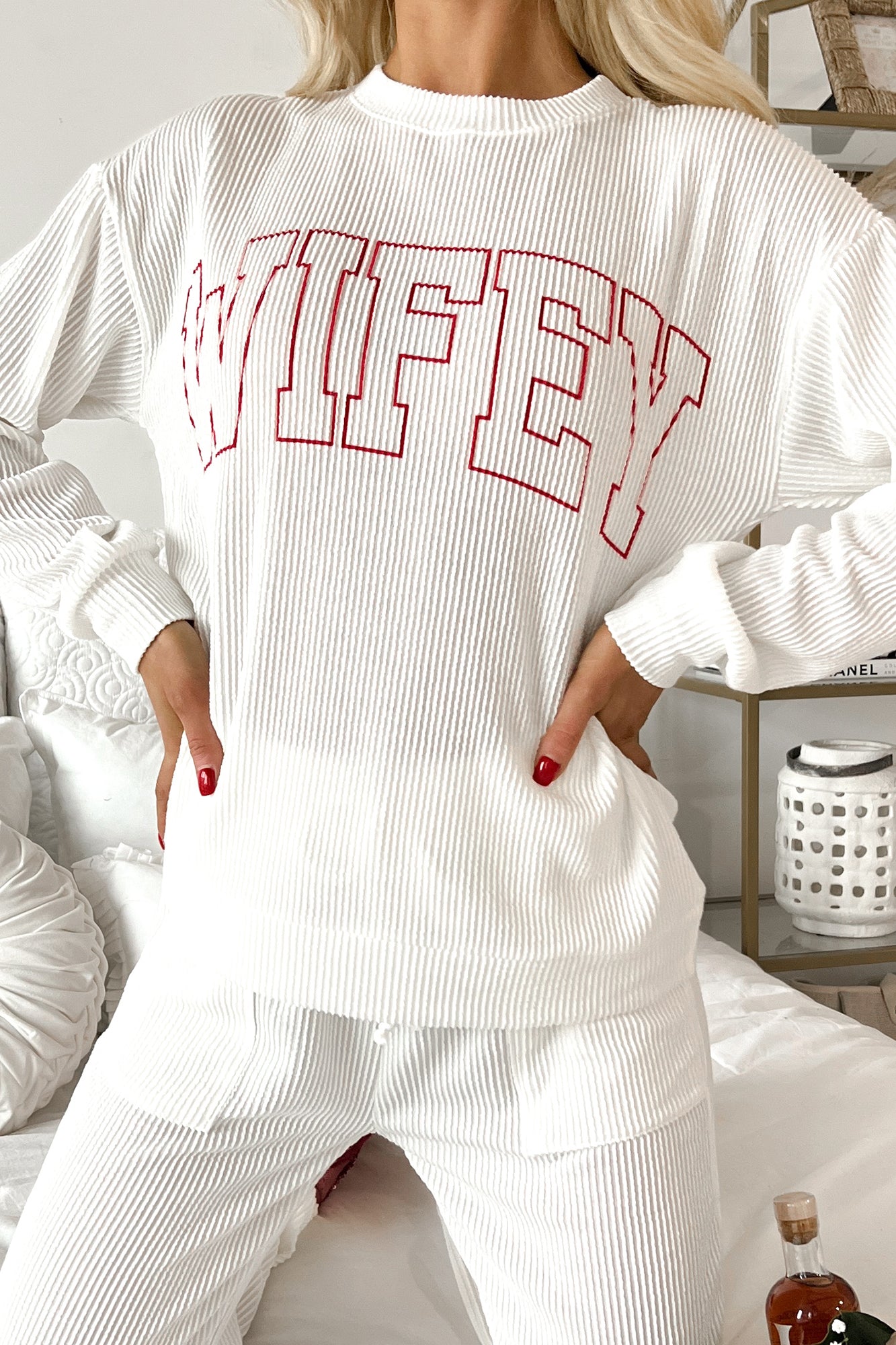 Wifey Material Ribbed Graphic Lounge Set (Ivory)