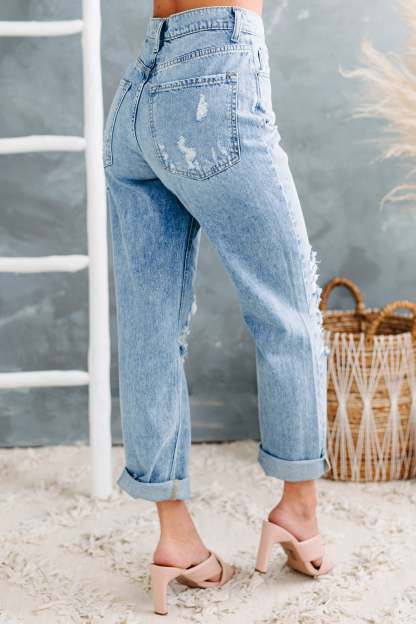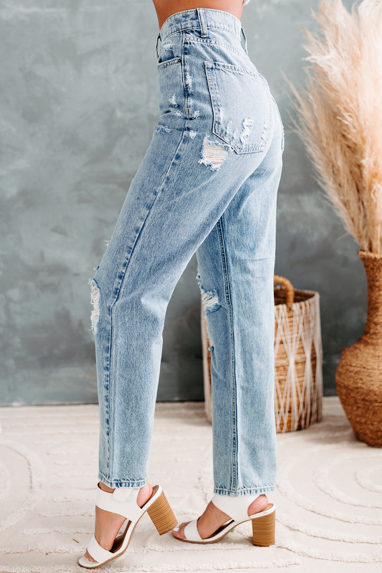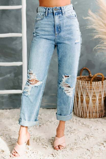 The 90's Look Is So Back In Style Right Now. So Add This Medium Light Pair Of High Rise. Relaxed Fit Jeans To Your Wardrobe!