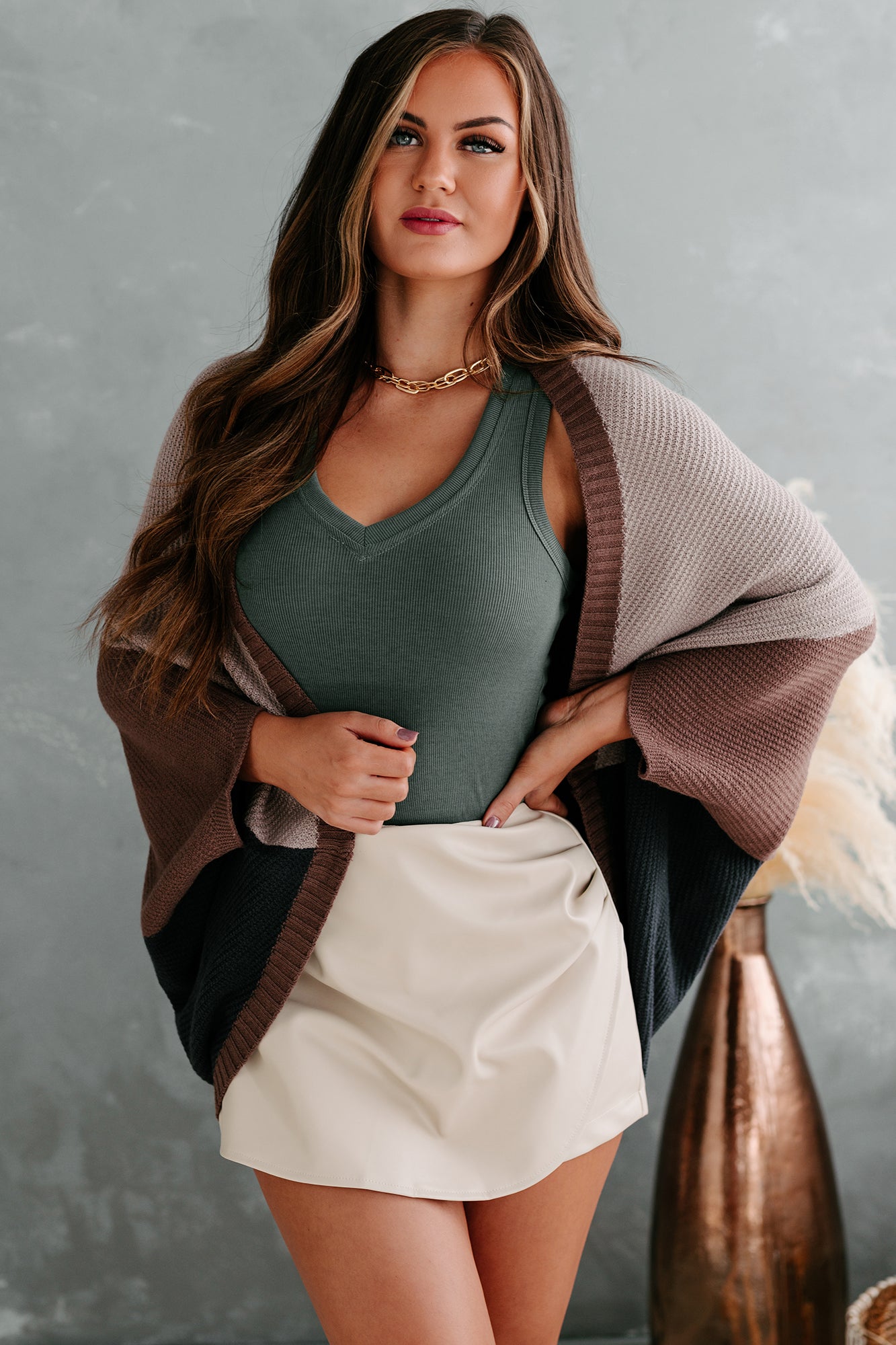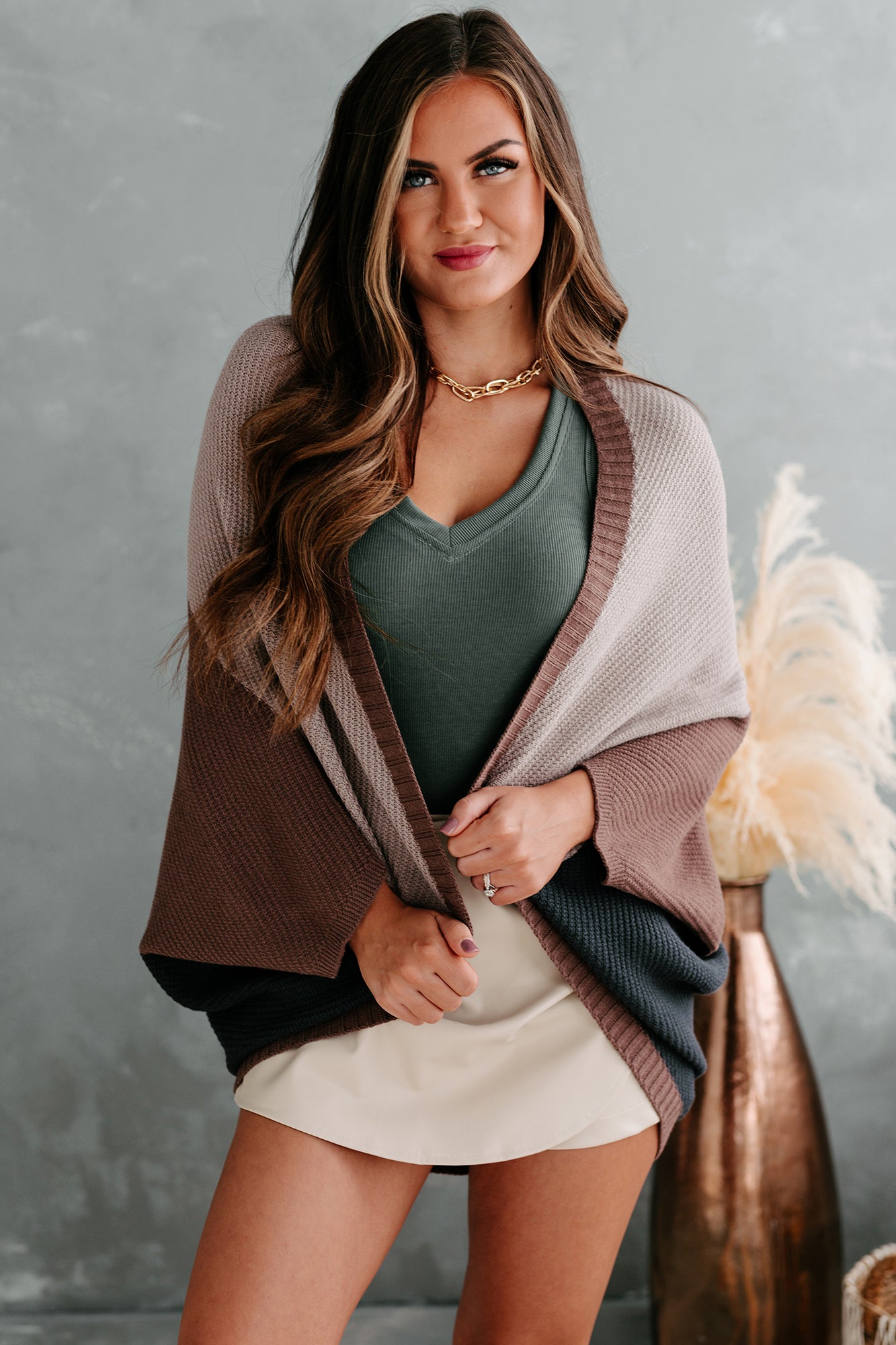 This Mocha/Midnight. Winged Sleeve. Color Block Cardigan Will Be The Statement Piece Of Anything You Pair It With!