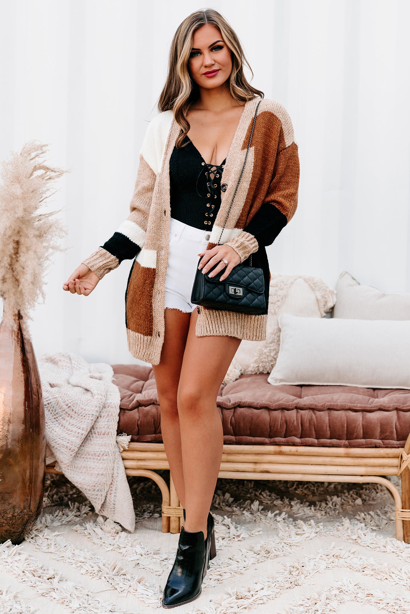 Wishing For Warmth Color Block Cardigan (Caramel Multi)
