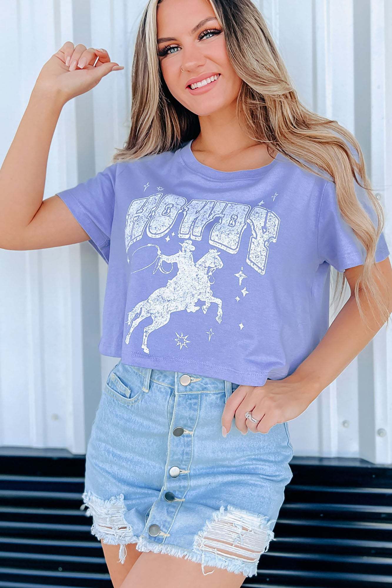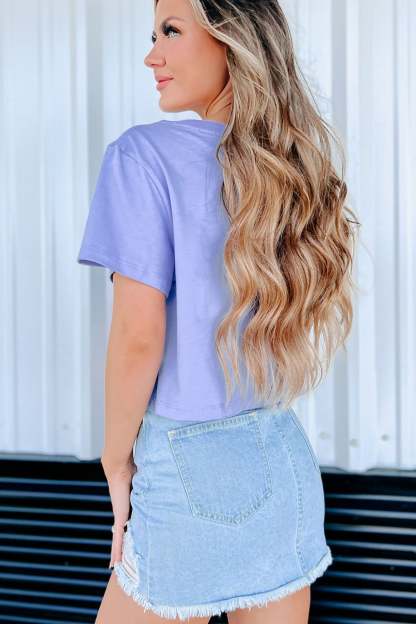 Wrangle Em' Cowboy Graphic Cropped Tee (Lavender)